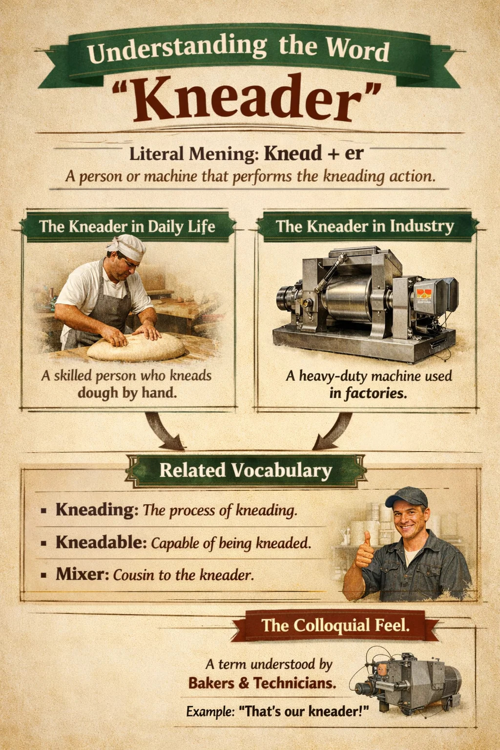 Kneder kan verwijzen naar de meester die specifiek verantwoordelijk is voor het mengen en kneden van het deeg.